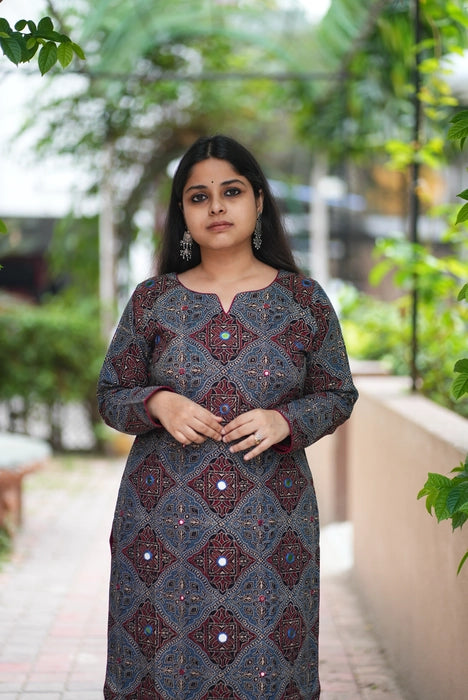 KASHMIR MIRROR WORK FULL SLEEVE AJRAKH KURTA