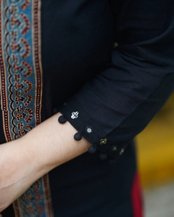KAVERI KOLAM INSPIRED MIRROR WORK AJRAKH KURTA